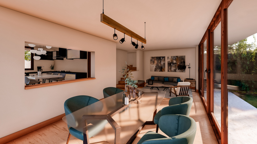 Los interiores combinan elegancia y funcionalidad con porcelanatos en primer piso y piso vinilico en segundo piso.